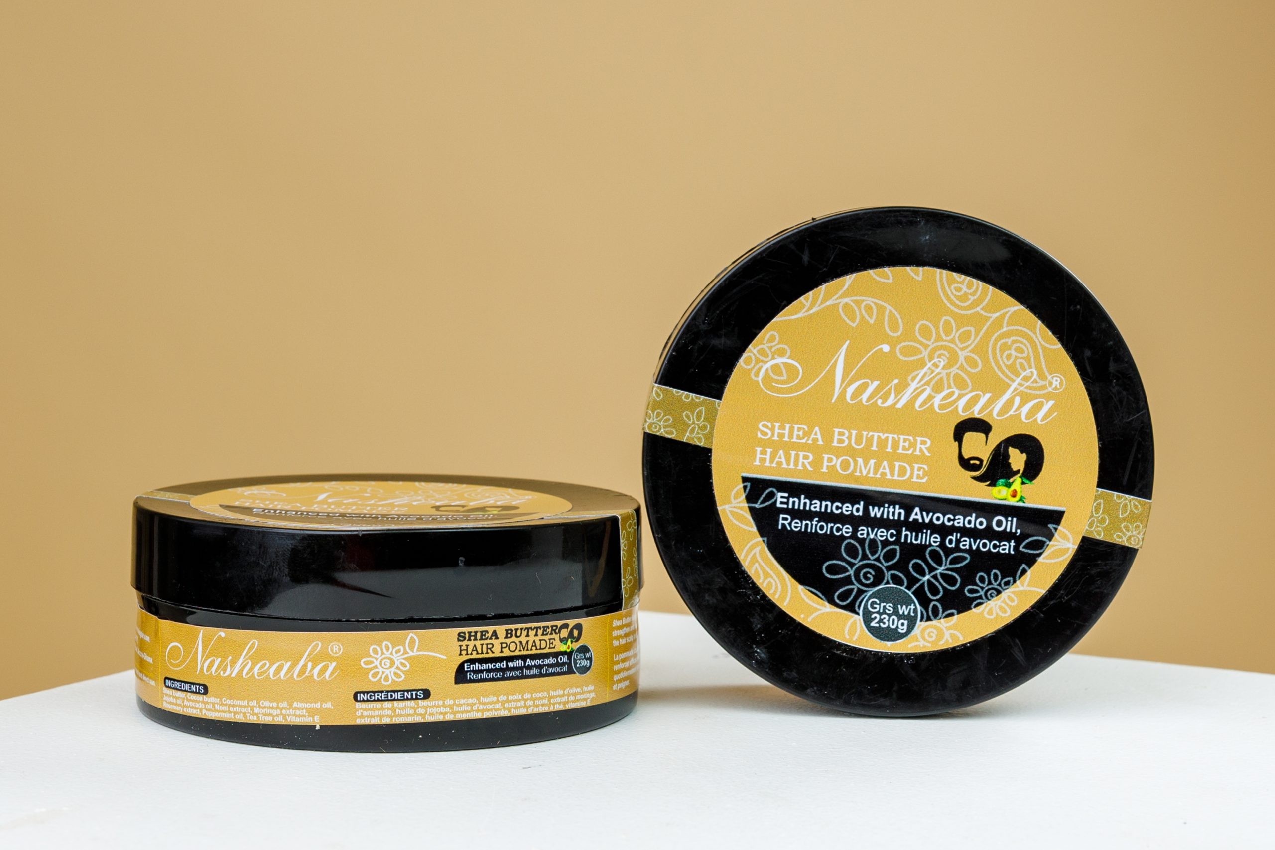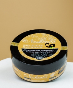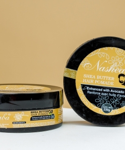 **Shea Butter Hair Pomade with Avocado Oil** is designed to moisturize and protect hair while enhancing softness and shine.